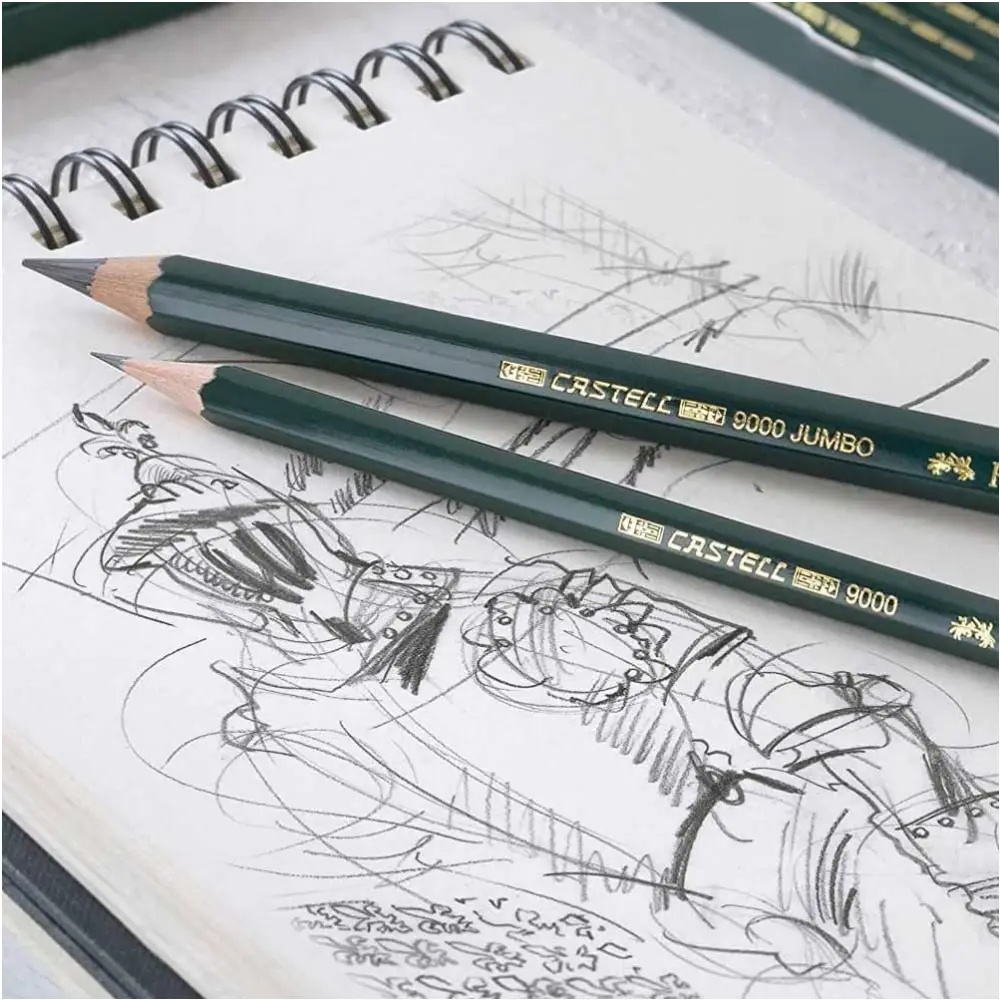 Faber Castell 9000 Jumbo Castell drawing pencils represent the same level of quality as Faber Castell’s acclaimed Castell 9000 series of drawing pencils in a slightly larger format. Available in five different graphite grades, these drawing pencils feature a 5.25 millimeter graphite core that offers users a variety of line widths. Their unique 9.25 millimeter overall diameter balances perfectly in the hands of architects, graphic designers, artists and anyone who prefers a larger sized pencil.