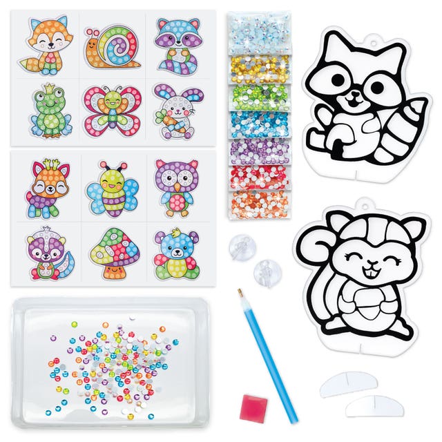 - Contents Include: 1000+ Colorful Gems (5 mm), 12 Holographic stickers: approx 5 x 5 cm 2 Suncatcher designs: approx. 16 cm tall