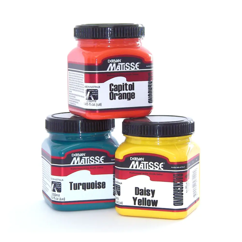 Matisse Background Coloured Gesso is a highly pigmented, all-purpose, pure acrylic, low tooth gesso that can be applied to almost any surface. Matisse Background Coloured Gesso is especially designed to be used as a surface preparation coat or sealer for canvas, board and wood, however it has also been used extensively in interior domestic decoration. Matisse Background Colours can be mixed with Transparent Gesso for a coloured primer with extra tooth, perfect as a pastel primer. Matisse Background Colours can also be used with stencils, design painting, or simply as a flat decorative wall and ceiling paint. Matisse Background Colours spread easily with brush or roller and dry fast to a matte velvet finish. Apply direct from the jar and clean up with water.